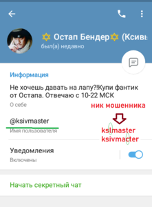 Новая личка мошенника